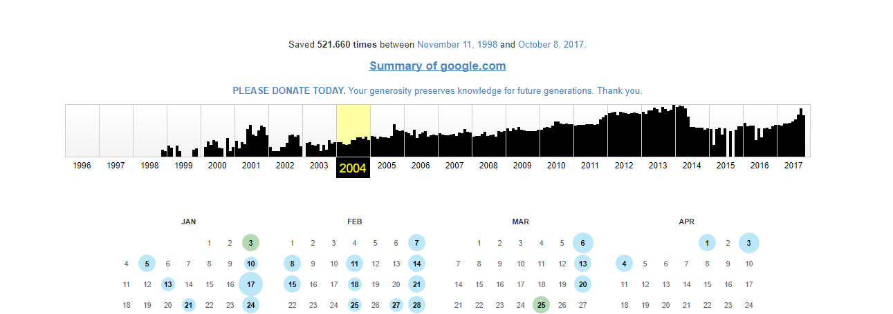 Öncelikle https://archive.org/web/ adresine gidiyoruz. Gittiğimiz adreste arama kutusuna site adı yazıyoruz ve çıkan takvimden sarı renkle balonlandırılmş bir günü seçip sitenin o haline gidiyoruz. Yılı seçme şansımızda var örnek görsel aşağıda.