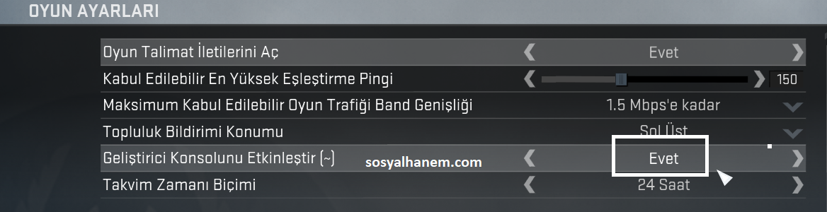 • Oyun seçenekleriGeliştirici ModuEvet yapıyorsunuz
